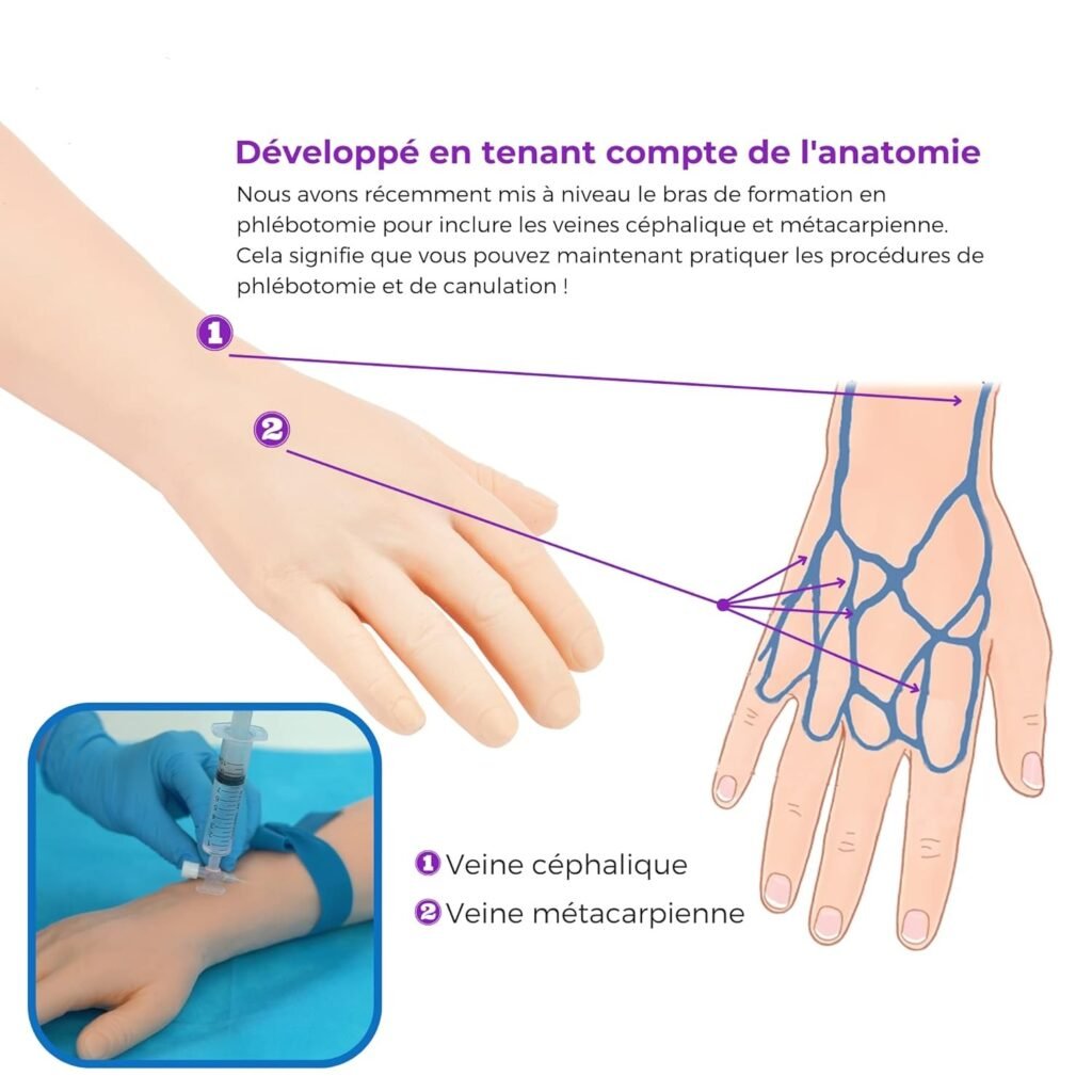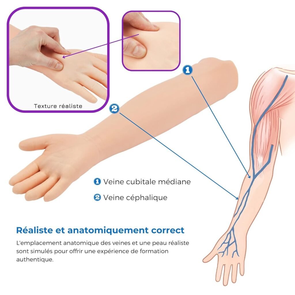 | Kit de phlébotomie très réaliste, avec veines anatomiques et “sensation” de ponction | L’aspect “bras réaliste” peut impressionner certaines personnes au début |