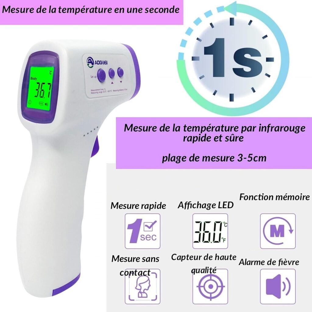 • Thermomètre frontal sans contact : rapide, hygiĂ©nique, idĂ©al pour les enfants (et pour les prises nocturnes sans les rĂ©veiller).