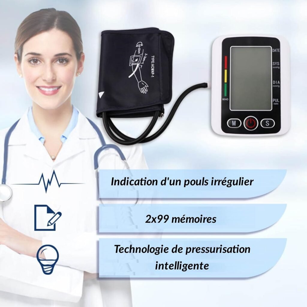 Lecture claire grâce aux écrans numériques et aux fonctions mémoireNe remplace pas un diagnostic médical, même si les chiffres sont rassurants