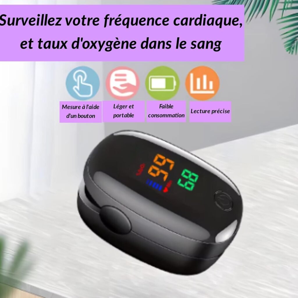 • Oxymètre de pouls : en quelques secondes, vous contrĂ´lez la saturation en oxygène et la frĂ©quence cardiaque.